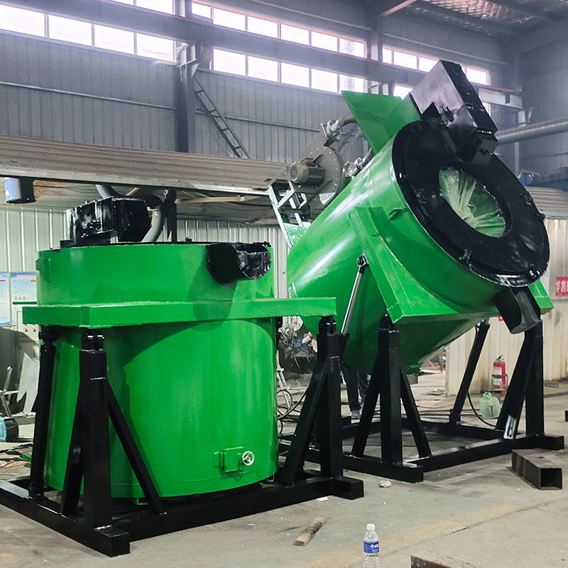 XK系列燃油式倾倒炉主要进行集中熔化铝锭及渣包料,通常与铝水转运包及转运包预热器配套使用。倾倒炉将铝锭及渣包熔成铝汤后,熔炉自动倾倒,将熔好的铝汤倒入 铝水转运包内。出于对坩埚的保护,一般不建议用户直接在倾倒炉内除渣与除气作业。