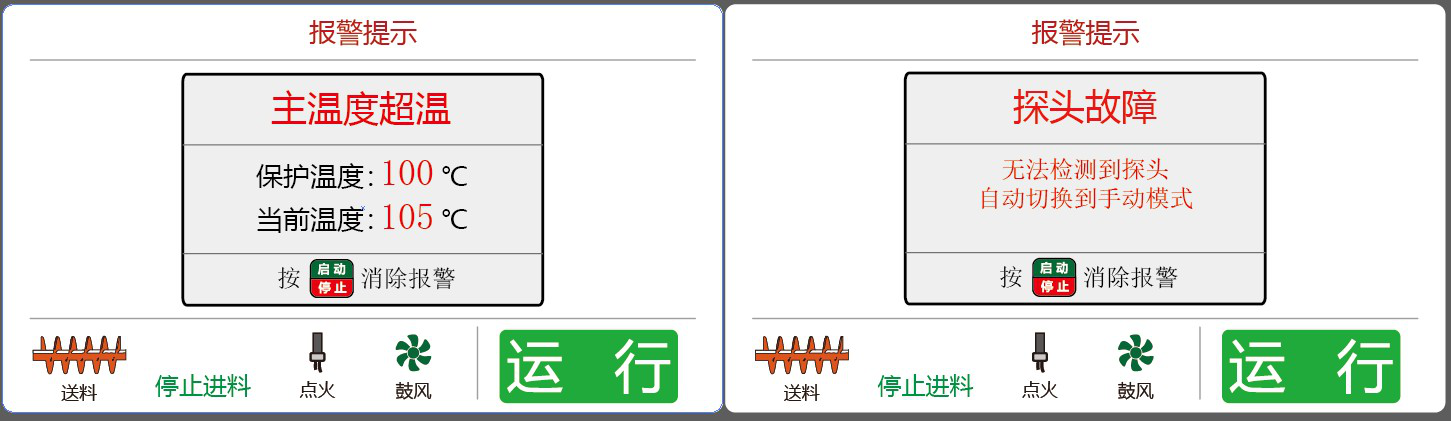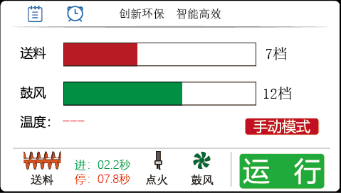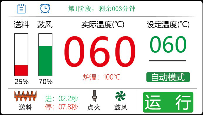 运行流程【待机】>【前吹扫】>【预送料】>【点火】>【缓冲】>【运行】>【冷却(防回火)】;