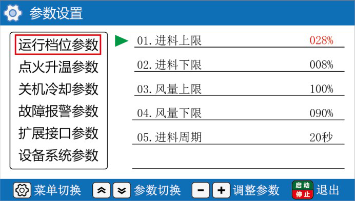1)、冷机时候,先将送料调整到本机标准燃料需求量,(30 万大卡需 75公斤),其他型号另有相应数据。