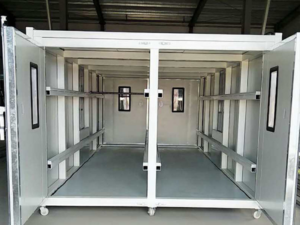 前进后出,开、关门操作方便。门框:镀锌板2.0制作。彩钢夹芯板门。